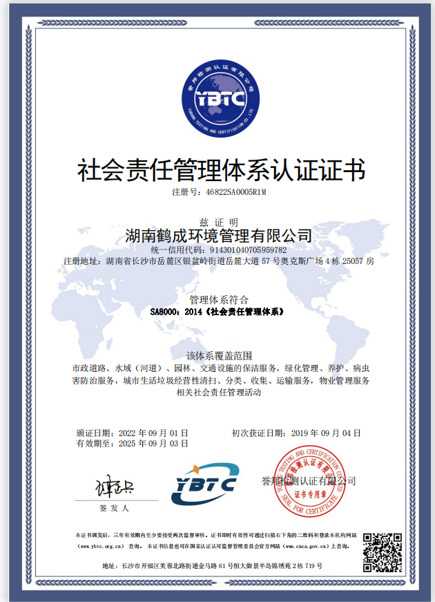 湖南鹤成环境理有限公司,成立2013q?月,原名长沙鹤成景观实业发展有限公司Q经q近几年的飞速发?各方资金的引?加之各界C会(x)力量的大力支?我司已发展成Z家实力雄厚的专业城乡环境化一体化q营商?br/>       目前公司总部自有办公面积500多^方米,座落在湖南省长沙?jng)岳麓区奥克斯广场,现有员?000余hQ其中管理h?26人,技术h?5人,公司配备行业优质的清z机械设备,现有多功能机扫R、大型洗扫R、自卸式垃圾清运车、高压清zR、高压水车、垃?qx(chng))车、压~垃圾R、高温高压洗地机、新能源车、E查R{?00余辆。ؓ(f)方便理公司环卫车辆、优化出行\Uѝ高效指导环卫工作,公司搭徏?jin)鹤成环境智慧环卫管理云q_Q对我司车辆q行数字化、专业化、精l化理。公怸要经营市(jng)攉K路清z维护、物业清z维护、园林绿化工E服务、风景园林工E设计与施工、交通设施的清洗l护、城?jng)生zd?攉q输、绿化管理等服务目?br/>